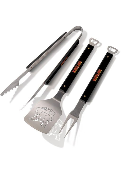 This Maryland Terrapins Tool Set is a great way to show your Terrapins pride while grilling at the tailgate. This Tool Set features a Sportula, a pair of tongs and a grill fork. Each tool is made from heavy-duty stainless steel with brass-riveted team-themed handles.
