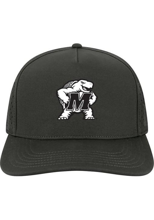 Product Details Product Details Legacy Cut Above AdjustableFront embroidered team logoRope across top of visorPerforated mesh on side and back panelsBack legacy logo tabBack soft snap closurePOLYESTERCurved BillLow CrownStructuredWipe clean with cloth or cleaning kitImported Officially Licensed This Black Terrapins Adjustable Hat features a front embroidered team logo with rope across visor.