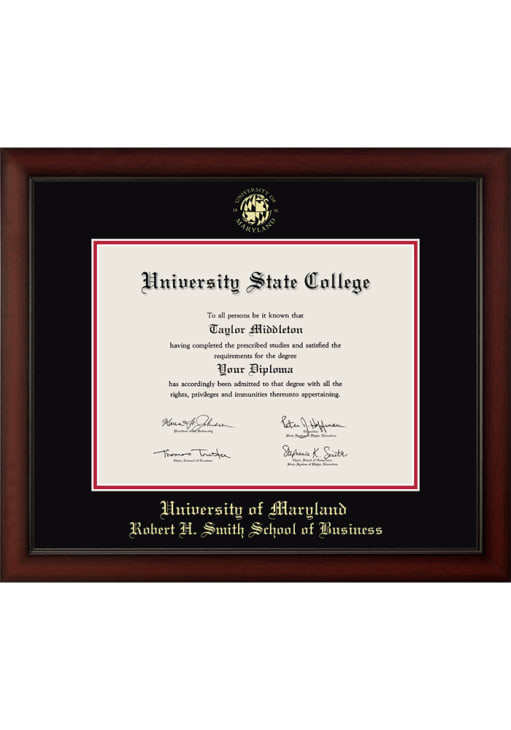 Maryland Terrapins Embossed Paxton Robert H. Smith School of Business Diploma Frame is a great way to keep your Terrapins memories close. You'll love looking at your favorite Terrapins moments with this Diploma Frame, which features a Showcase for your university diploma frame. Go Terps!