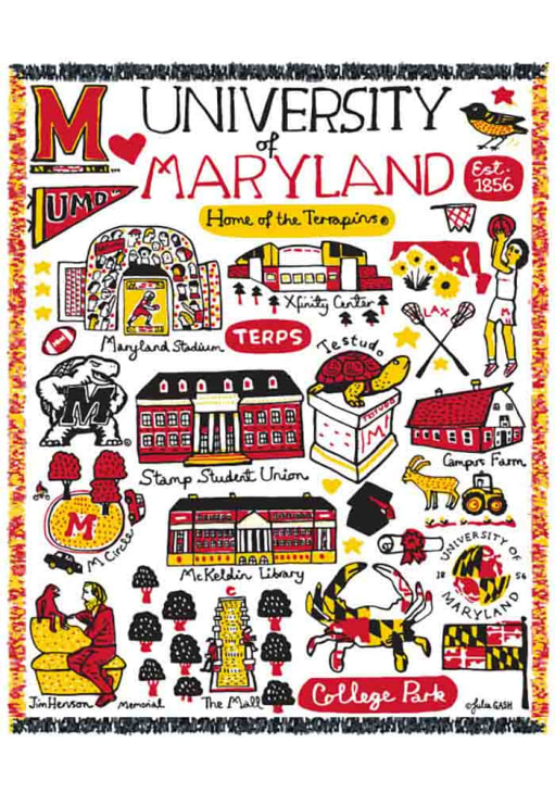 Show off your Terrapins spirit with this Tapestry Blanket. This Tapestry Blanket features a hand drawn illustrations of campus landmarks by Julia Gash and is sure to add the perfect amount of team pride to your bedroom.