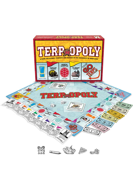 Product Details Product Details Product Dimesions: 15.25" x 10.5" x 2"2-6 PlayersAges 8+Hours of fun!Opoly-style play Officially Licensed Have fun and show support for your team with this Maryland Terrapins Monopoly Game. This Game features a state themed game for hours of Terrapins fun.