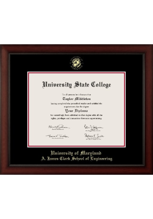 Maryland Terrapins Paxton A. James Clark School of Engineering Diploma Frame is a great way to keep your Terrapins memories close. You'll love looking at your favorite Terrapins moments with this Diploma Frame, which features a diploma frame with school name and seal. Official size 25"w x 21"h. Go Terps!