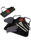 Product Details Product Details Folds into easy-to-carry toteAdjustable shoulder strapTote folds out in to apron with team logoDeluxe BBQ set stored in side3 stainless steel BBQ toolsComes with chef's hatPerfect for barbecues, picnics, and campingPolyester ToteImported Officially Licensed Maryland Terrapins Apron Set will show your {Mascot Alia} pride. This Apron Set features a team logo and will look great at any tailgate. Go Terps!