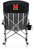 Product Details Product Details Folding rocking chair with mesh cup holder in armrestIncludes carrying bagMade of 600D PVC with steel frame28" x 35.8" x 40.5"Built to lastImported Officially Licensed Kick back, relax, and cheer on the Terrapins in this Maryland Terrapins Rocking Camp Folding Chair. This Folding Chair features a team logo.