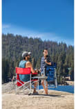 - Lightweight, portable folding chair with a sturdy aluminum frame