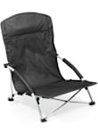 - Heavy-duty, fold-flat portable beach chair that has padded armrests