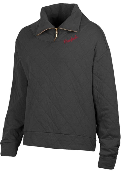 Embrace the warmth and showcase your Terrapins pride with our Maryland Terrapins Long Sleeve Qtr Zip. This Womens Black Quilted Long Sleeve Pullover offers a screen print for the perfect combination of comfort and style. Elevate your everyday look with this must-have Maryland Terrapins Long Sleeve Qtr Zip.