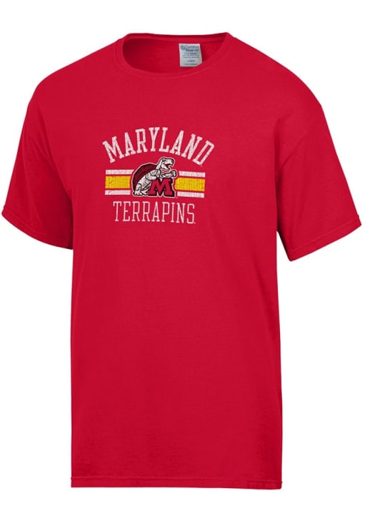 Display your team spirit with this remarkable Maryland Terrapins Red Arch Short Sleeve T-Shirt! The Maryland Short Sleeve Tee showcases a screenprint team name and team logo on center chest that truly sets it apart. Stand out from the crowd and proudly declare your allegiance to the Terrapins with this exceptional Red Maryland T-Shirt. Go Terps!