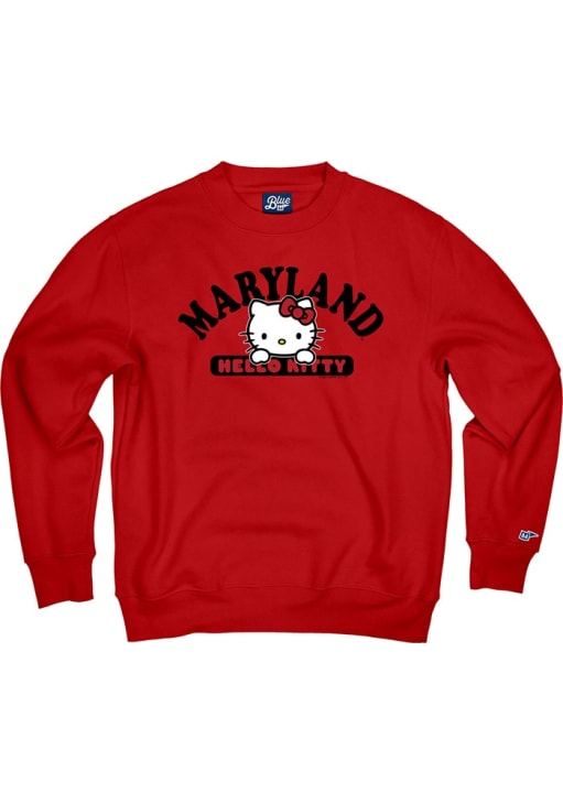 Gear up for the ultimate game day experience with this remarkable Maryland TerrapinsWomens Red Quick Look Crew Sweatshirt! Designed with the true fan in mind, this Terrapins Long Sleeve Sweatshirt features a screen print team graphic with Hello Kitty on center chest. Stay warm and comfortable with this Womens Maryland Terrapins Crew Sweatshirt.
