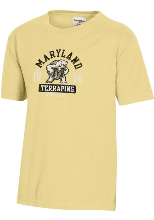 Size Chart for Youth Yellow Maryland Terrapins Arched Team Graphic Short Sleeve T-Shirt