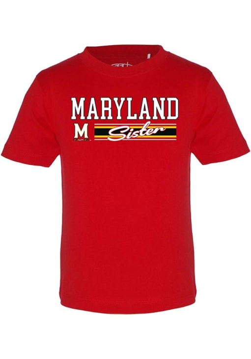 Support your favorite team in this Girls Red Maryland Terrapins Sister Short Sleeve T-Shirt! This T-Shirt features a screen print team graphic, so everyone will know your favorite team is the Maryland! This is the perfect Maryland Terrapins Girls T-Shirt for wearing to game day or everyday. Go Terps!
