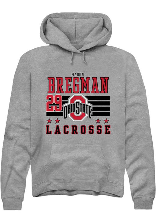 Mason Bregman Rally Mens Grey Ohio State Buckeyes NIL Striped Hooded Sweatshirt