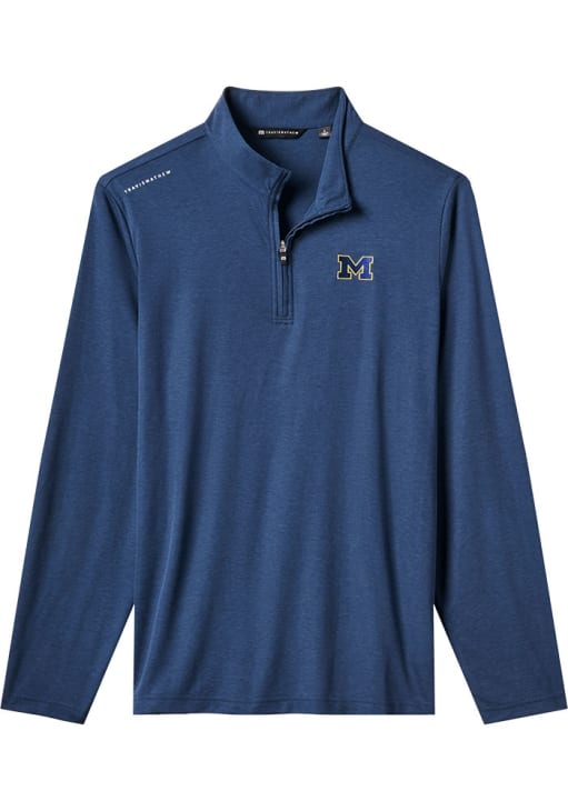 Embrace the warmth and showcase your Wolverines pride with our Michigan Wolverines Long Sleeve Qtr Zip Pullover. This Mens Navy Blue time to tailgate Long Sleeve Pullover offers a team logo on left chest for the perfect combination of comfort and style. Elevate your everyday look with this must-have Michigan Wolverines Long Sleeve Qtr Zip Pullover.