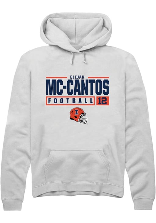 Elijah Mc-Cantos Rally Mens White Illinois Fighting Illini NIL Stacked Box Hooded Sweatshirt