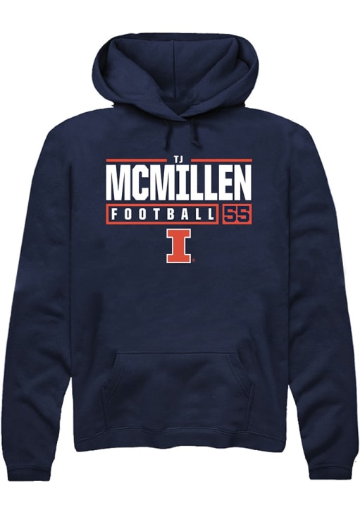 Tj McMillen Rally Mens Navy Blue Illinois Fighting Illini NIL Stacked Box Hooded Sweatshirt