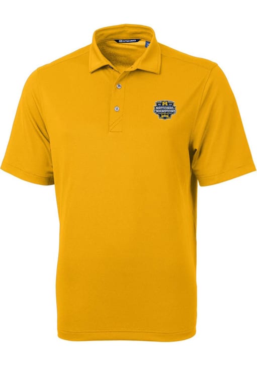 Enhance your professional style with this striking Mens Gold Short Sleeve Polo Shirt! Showcase your team pride among colleagues with this exceptional Michigan Gold 2023 College Football National Champions Virtue Eco Pique Short Sleeve Polo. Stand out and make a statement in this Michigan Wolverines Short Sleeve Polo, featuring a moisture wicking material that adds a touch of distinction to your look.