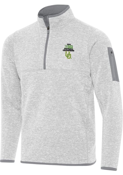 Mens Oregon Ducks Grey Antigua 2024 Big Ten Football Champions Fortune Qtr Zip Fashion Pullover