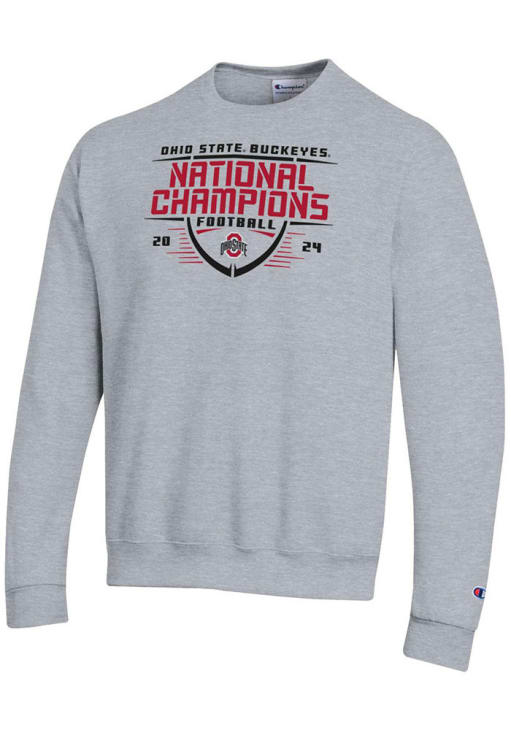Gear up for the ultimate game day experience with this remarkable Ohio State BuckeyesMens Grey Football 2024 Football National Champion Gridiron Powerblend Crew Sweatshirt! Designed with the true fan in mind, this Buckeyes Long Sleeve Crew Sweatshirt features a printed team graphic. Stay warm and comfortable with this Mens The Ohio State University Buckeyes Crew Sweatshirt.