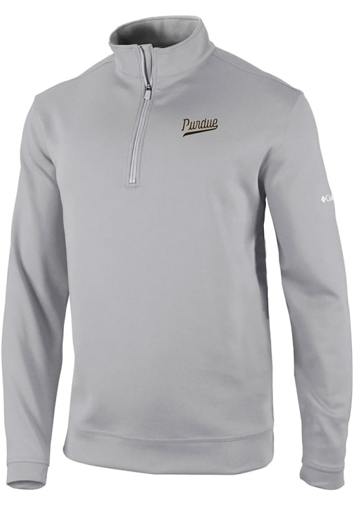 Embrace the warmth and showcase your Boilermakers pride with our Purdue Boilermakers Long Sleeve Qtr Zip Pullover. This Mens Grey Vault Heat Seal Omni Wick Wickhams Hills Long Sleeve Pullover offers a heat seal team logo for the perfect combination of comfort and style. Elevate your everyday look with this must-have Purdue Boilermakers Long Sleeve Qtr Zip Pullover.