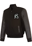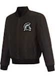 - Rib knit collar, cuffs and waistband with traditional snap front closure