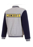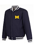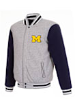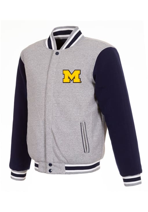 Product Details Product Details Reversible jacket with team logoFleece on outside with nylon reversible sideRib-knit collar, cuffs and waistbandEmbroidered fabric applique graphicsFull snap closureHeavyweight jacket suitable for cold temperaturesPOLYESTER Officially Licensed This Charcoal Michigan Wolverines Heavyweight Jacket is a great way to show pride in Wolverines on a chilly gameday. Stay warm for the next Michigan Wolverines tailgate in this Heavyweight Jacket which features a embroidered team logo.