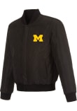 - Wool-blend body and leather sleeves