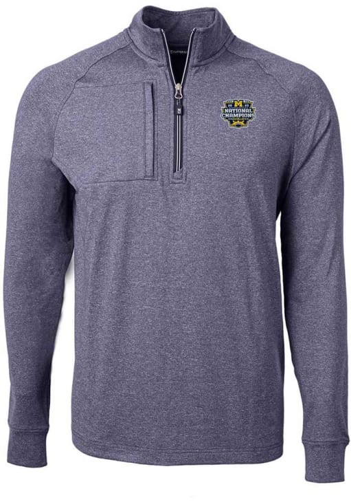 Embrace the warmth and showcase your Wolverines pride with our Michigan Wolverines Big and Tall Qtr Zip. This Mens Blue 2023 College Football National Champions Adapt Eco Knit Big and Tall Pullover offers a wind resistant recycled shell for the perfect combination of comfort and style. Elevate your everyday look with this must-have Michigan Wolverines Big and Tall Qtr Zip.