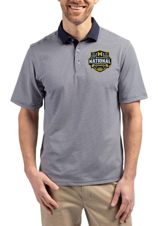 Enhance your professional style with this striking Mens Navy Blue Short Sleeve Polo Shirt! Showcase your team pride among colleagues with this exceptional Michigan Navy Blue 2026 MBB Champions Virtue Eco Pique Micro Stripe Short Sleeve Polo. Stand out and make a statement in this Michigan Wolverines Short Sleeve Polo, featuring a micro stripe pattern that adds a touch of distinction to your look.