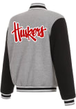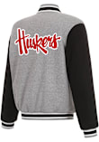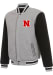 Product Details Product Details Reversible jacket with team logoFleece on outside with nylon reversible sideRib-knit collar, cuffs and waistbandEmbroidered fabric applique graphicsFull snap closureHeavyweight jacket suitable for cold temperaturesPOLYESTER Officially Licensed This Charcoal Nebraska Cornhuskers Heavyweight Jacket is a great way to show pride in Cornhuskers on a chilly gameday. Stay warm for the next Nebraska Cornhuskers tailgate in this Heavyweight Jacket which features a embroidered team logo.