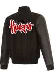 - Wool-blend body and leather sleeves