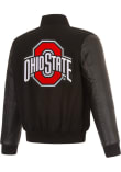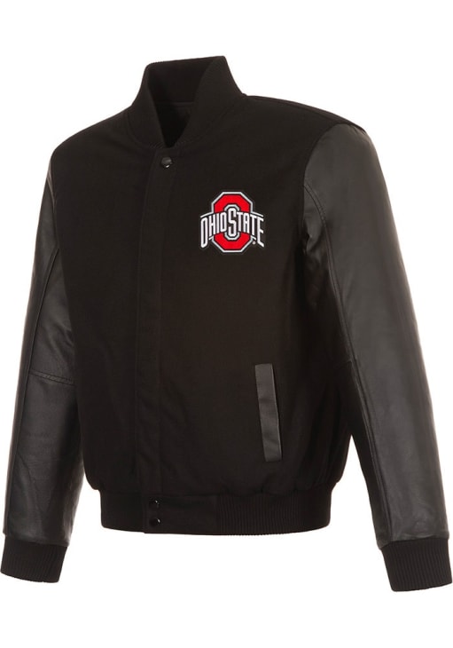 - Wool-blend body and leather sleeves
