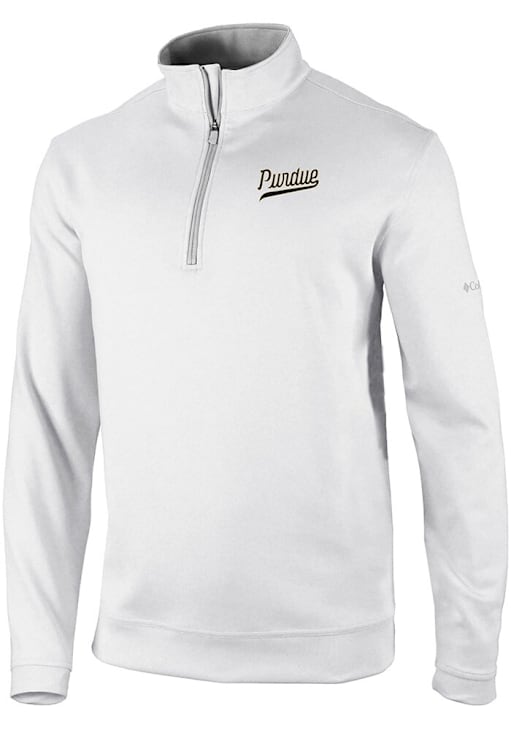 Embrace the warmth and showcase your Boilermakers pride with our Purdue Boilermakers Long Sleeve Qtr Zip Pullover. This Mens White Vault Heat Seal Omni Wick Wickhams Hills Long Sleeve Pullover offers a heat seal team logo for the perfect combination of comfort and style. Elevate your everyday look with this must-have Purdue Boilermakers Long Sleeve Qtr Zip Pullover.