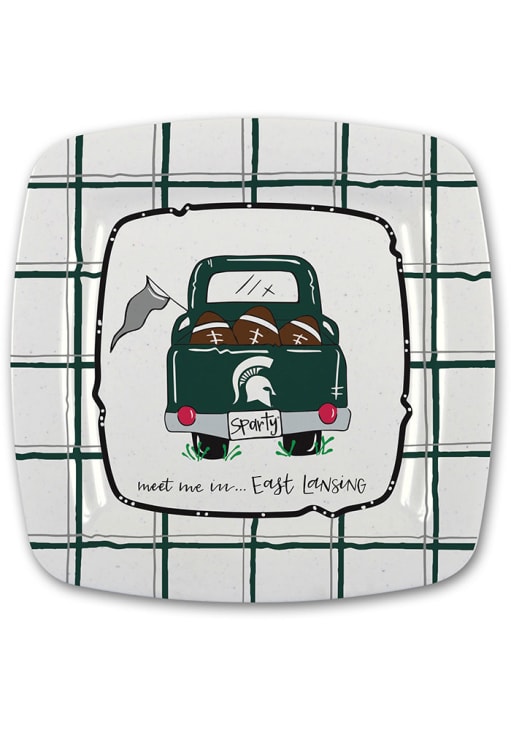 Add these Spartans Plate to your next tailgate party. Celebrate your favorite team while your enjoy your favorite gameday snacks on these Michigan State Spartans Plate.