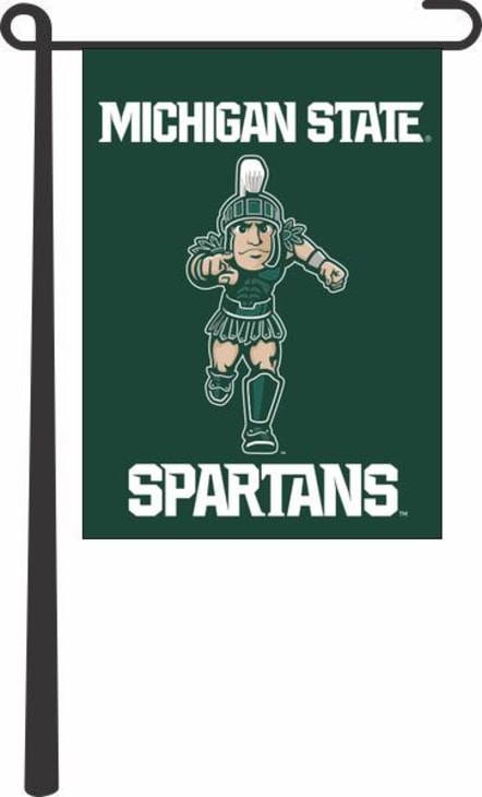 Product Details Product Details Upstage everyone else's garden and support the Spartans with this Michigan State Spartans 13X18 Inch Design Garden Flag. This Garden Flag features a team logo and is essential for any fan's yard. Flagpole not included. Go Spartans!