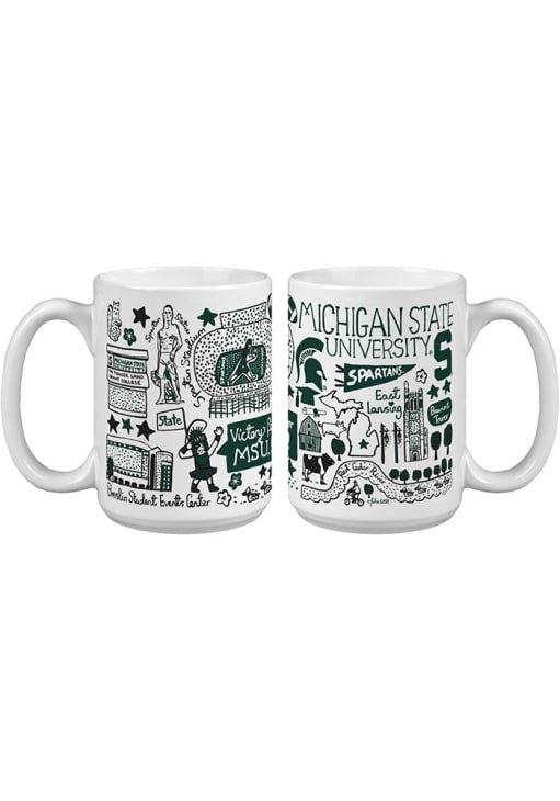 Enjoy your favorite drink while supporting your favorite team with this Michigan State Spartans Ceramic Mug. This Ceramic Mug features a hand drawn illustrations of campus landmarks by Julia Gash. You will have plenty of room to hold your drink and put your pride on display.
