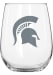 Product Details Product Details Holds up to 16 ozPopular shape that is easy to holdCurved design reduces risk of breakageChip resistant rimDishwasher safeFrosted team logoGLASS Officially Licensed This Michigan State Spartans Stemless Wine Glass is a great way to show off your team spirit. This Stemless Wine Glass features a curved beverage glass with etch team logo that'll make any evening full of MSU fun. Go Spartans!