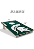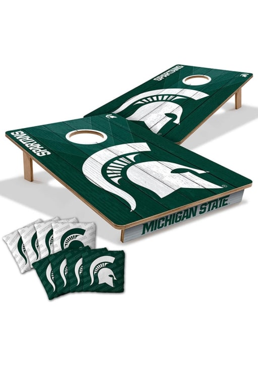 Product Details Product Details Each board measures 2 ft x 3 ftEasy TransportPerfect for tailgating!Great way to support your favorite team!Great gift! Officially Licensed Hit your next Spartans tailgate with this Michigan State Spartans Corn Hole. You and your friends can have some fun before the Spartans play with this Corn Hole, which features a team logo on team colored background.