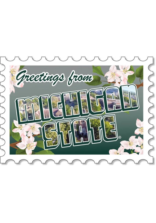 Green Michigan State Spartans 3.5in Greeting From Postcard Rugged Stickers