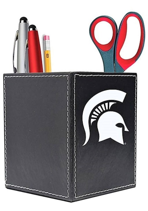 Product Details Product Details Holds most common desk itemsTeam color logo on frontShow your team support at the officeFull color digital printPLASTIC Officially Licensed This Michigan State Spartans 3.5x4 Square Caddy Desk Caddy is a great way to keep your supplies organized while showing your Spartans pride. This Desk Caddy features a team logo on a 3.5x4 inch leather square that holds most desk items.