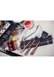 Product Details Product Details Durable polyester carry tote with adjustable shoulder strapHanging cords to easily hand from your barbecueStainless steel tools with beautiful wood handles18" fork18.5" spatula18" tongsPolyester ToteImported Officially Licensed This Michigan State Spartans Tool Set is a great way to show your Spartans pride while grilling at the tailgate. This Tool Set features a team logo.