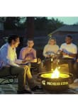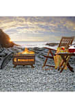 - Safety ring surrounding fire pit also functions as footrest and handle