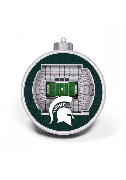 Product Details Product Details 3 inch diameter3D replica of your favorite teams stadiumPrinting on both front and backStacked three layers deepPerfect holiday gift for sports fansWOODImported Officially Licensed Decorate your Spartans tree this holiday season with this Michigan State Spartans 3D Stadium View Ornament. Add MSU features to your holiday cheer. This Ornament features a a 3D birdseye view of teams stadium as an ornament. Go Spartans!