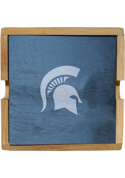 Keep your surfaces protected and show your Spartans support with this Michigan State Spartans Coaster. This Coaster features a team logo on slate 4pk coaster set in wooden box. Go Spartans!