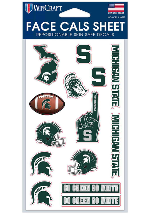 Product Details Product Details Repositionable decals, no need for waterSafe for skinIncludes one sheet of assorted tattoosQuick and easy way to show your team spirit!PaperUSA Officially Licensed Show off your Spartans pride with this Michigan State Spartans 4x7 Face Tattoo. This Tattoo features a multiple team color logos and mascots.