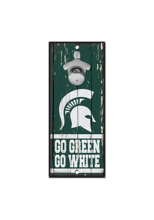 This Michigan State Spartans 5X11 Bottle Opener Sign is great for decorating your home Spartans team spirit. Take your team spirit to the next level with this Sign, which features a 3/8" team logo hardboard sign with a tough cast opener securely attached, and two mounting holes are drilled for easy hanging. Go Spartans!