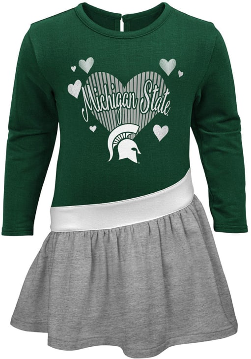 Size Chart for Baby Girls Green Michigan State Spartans Heart Jersey Short Sleeve Dress