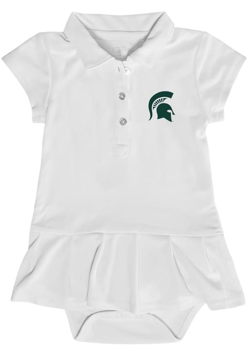 Let your baby's unique style show in this Michigan State Spartans Baby Girls Dress. Featuring a built in 3-snap onesie bottom, this White Spartans Dress is the perfect way to show off your style and pride for the Michigan State Spartans.