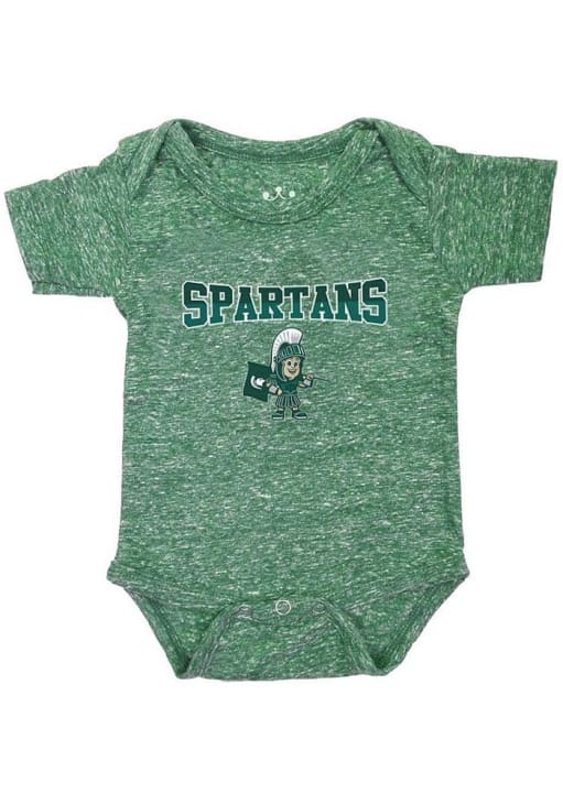 Your little Spartans fan will look adorable in this Baby Green Michigan State Spartans Cartoon Sparty One Piece! This Michigan State Spartans Romper features a screen print team graphic.