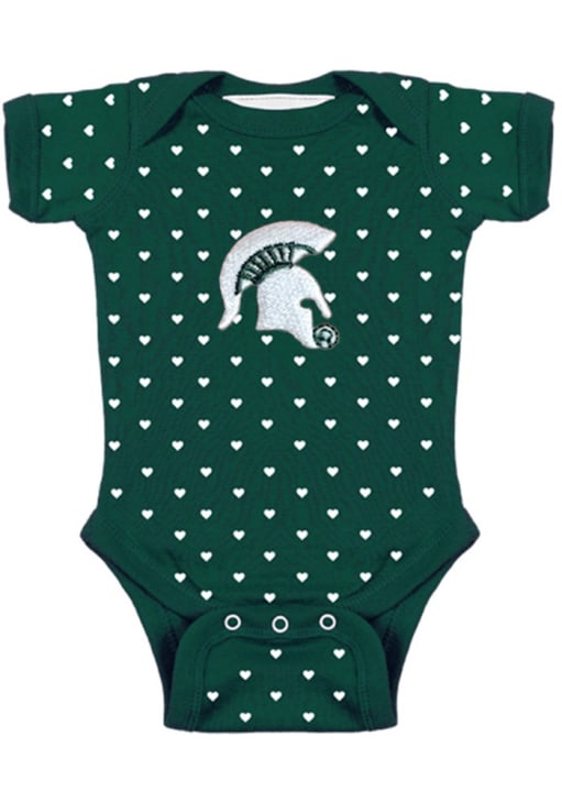Your little Spartans fan will look adorable in this Baby Green Michigan State Spartans Heart One Piece! This Michigan State Spartans Romper features a heart print all over and team logo center.