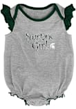 Your little Spartans fan will look adorable in this Baby Green Michigan State Spartans Homecoming One Piece! This Michigan State Spartans Romper features a glitter screen print on center chest.